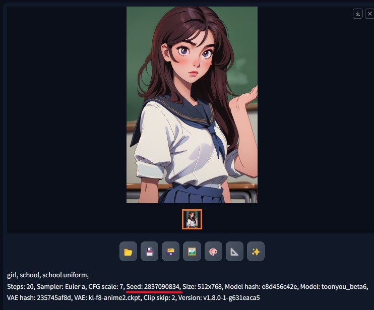 시드를 재사용하고 싶다면 이 시드값을 복사해 붙여넣기합니다. 또는 재활용버튼을 클릭하여 마지막 생성의 시드를 재사용합니다.
