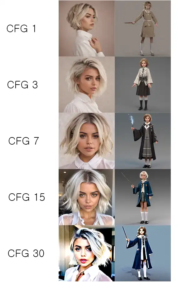 CFG(Classifier Free Guidance) Scale은 프롬프트를 얼마나 준수해야 하는지 제어하는 매개변수입니다.